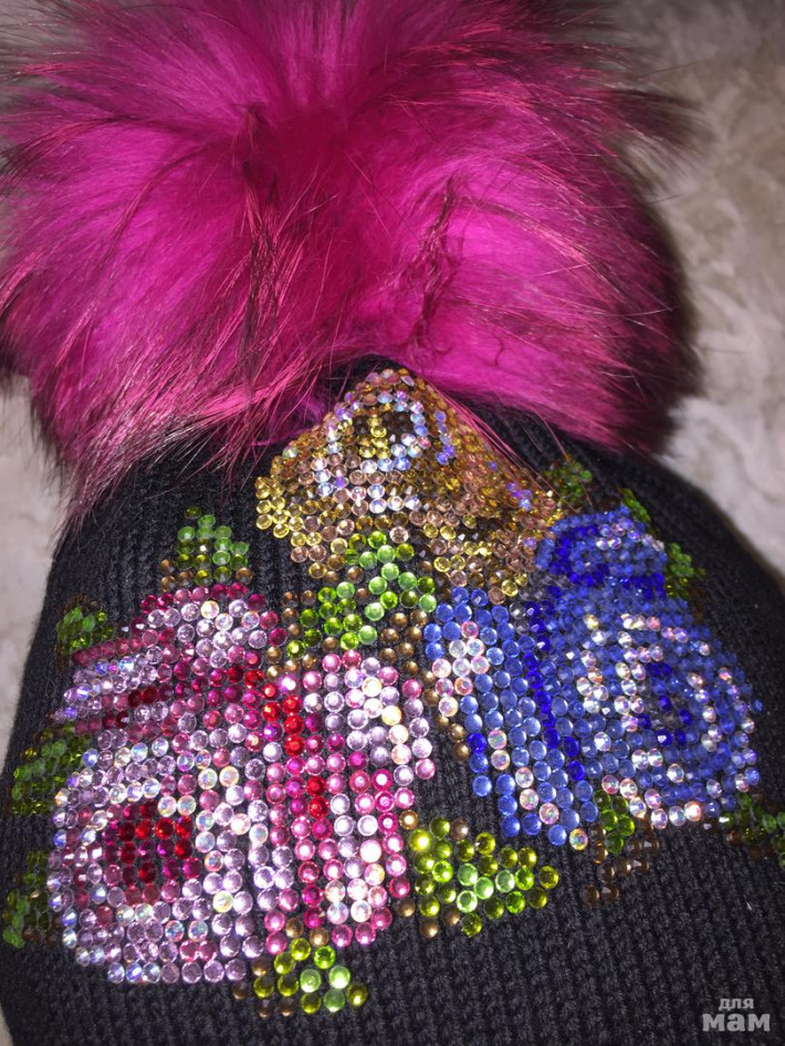 Шапочка от известного мастера Елены. Однослолойная плотная шерсть ,до -5 гр.на раннюю весну,позднюю осень. Стразы Сваровски горят огнем! Р. 50-54см. Состояние идеальное.Могу поменять помпон на черную ламу.