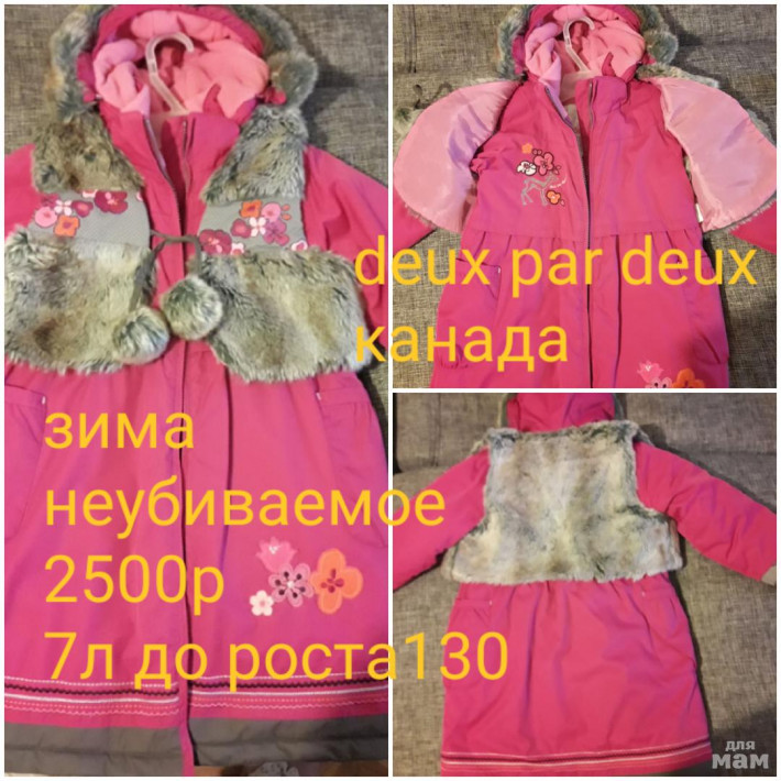 Зимнее пальто от известной канадской фирмы, неубиваемое, очень теплое, легкое, не промокает, с шарфом. Жилетка меховая съёмная, стильно, удобно. В отличном состоянии ( вешалка только порвана)