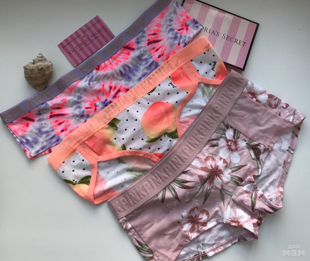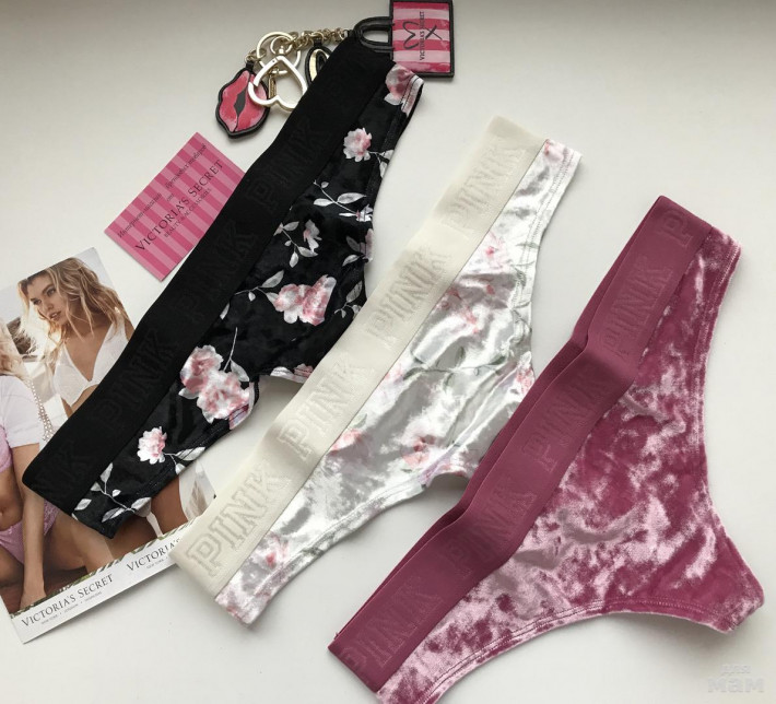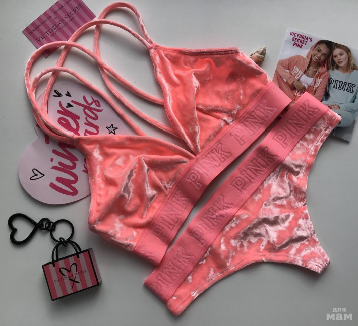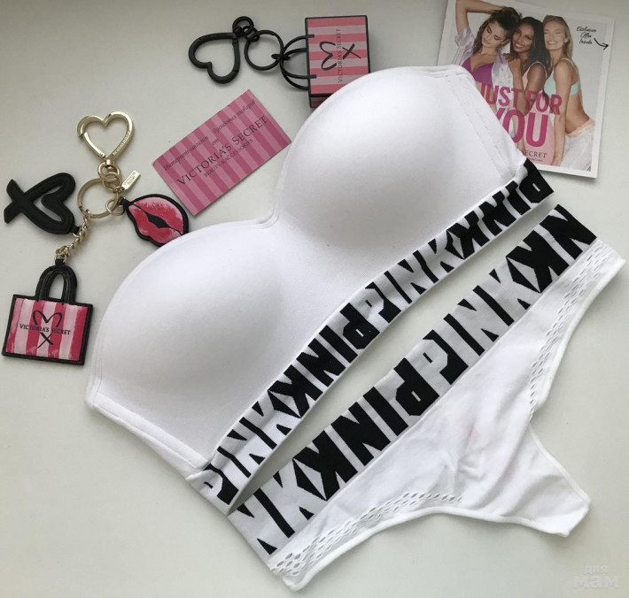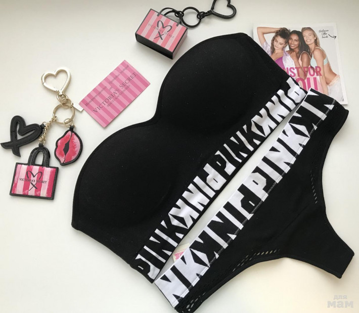 Добрый день. Трусики роз и черн с собачками и розовый бюст на модели с бел бретелями, подскажите размер и цену