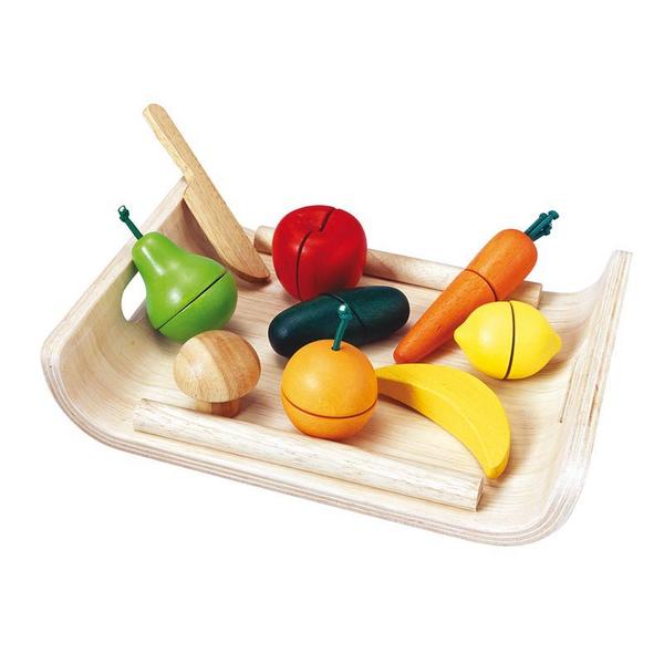 Деревянный набор овощей и фруктов от Plan Toys - отличный подарок маленькой хозяюшке!