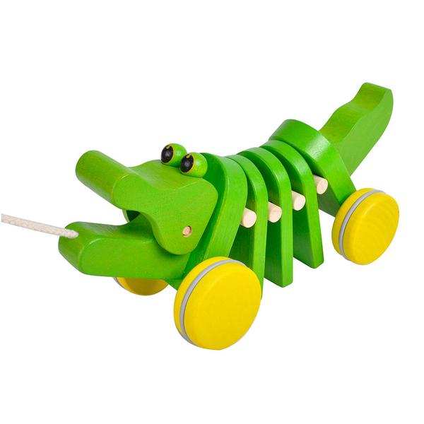 Деревянная каталка - веселый крокодил порадует малышей веселыми передвижениями.