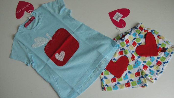 Здравствуйте. Интересует футболка и шорты на 5 лет. Футболка с девочкой на велосипеде и шорты рядом. И платье на 4. С длинным рукавом и сердцем. . Большемерят вроде немного? Сможете дать замерв ?