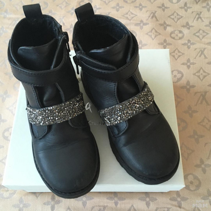 Сапожки демисезон, внутри кожа. Поцарапаны носы, легко замазать кремом. Фото как есть, не мазала. В остальном состояние отличное. Отдам за 500