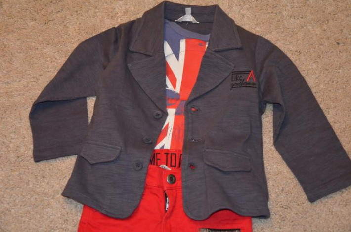 2. Пиджак р.98, трикотаж, носить с 92 до 104 реально 1100р