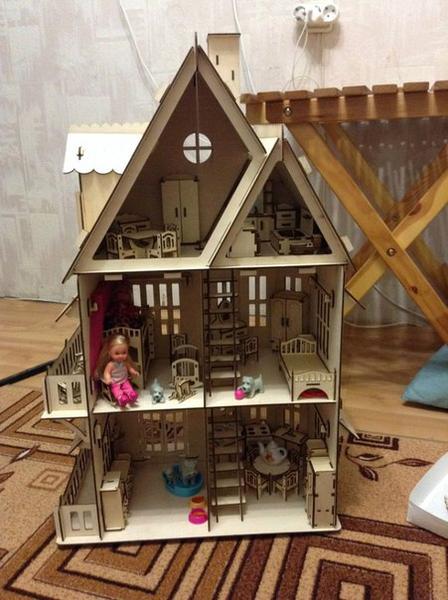 Размеры домика: 76х45х29 см. Толщина стен: 3 мм.Высота каждого этажа: 21 см.