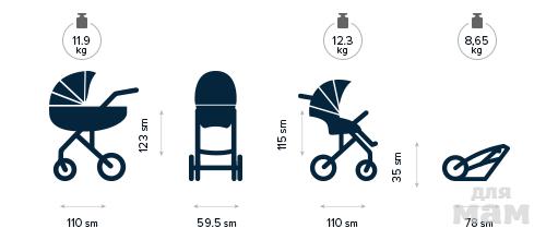 4. Правильные габариты и вес коляски: ширина шасси 60 см - проходит почти в ЛЮБОЙ лифт, вес всего 12 кг - очень легкая для полноценной классической коляски.