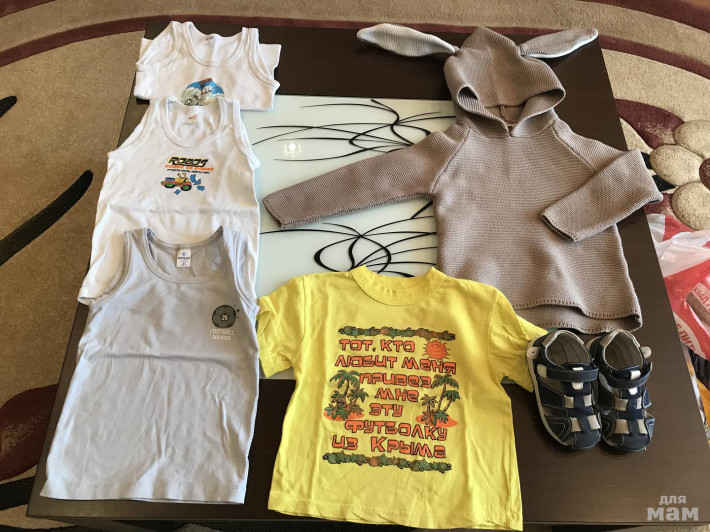На верхней белой майке есть пятна и эмблема прилипла к утюгу. Босоножки носили активно в дет сад. Стелька 14,5 см. Цена за все.