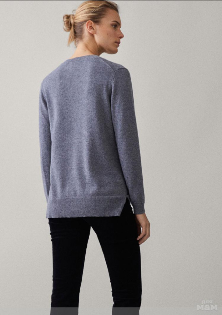 Однотонный свитер из 100% кашемира. Прямой крой, V-образный вырез, длинные рукава, отделка в рубчик и боковые разрезы по низу.