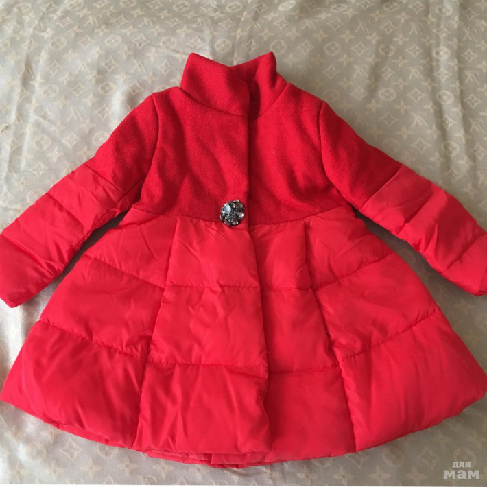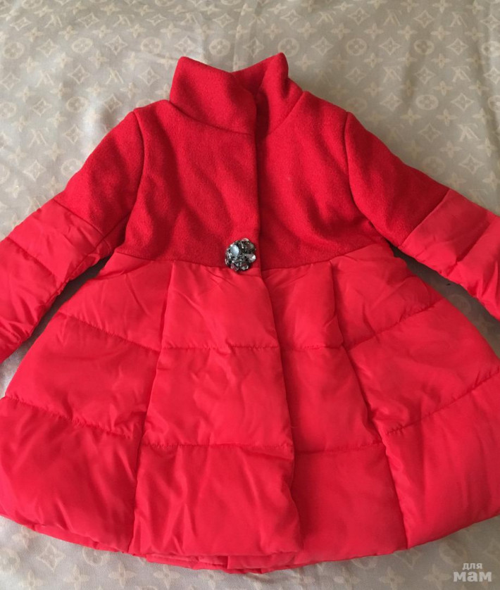 Пальто новое, размер 110. Пришло с нюансом. На пуговице-броши отсутствует один камень. Наполнитель синтепон, не зима, скорее осень-весна. Переросли. Отдам за 2500 + почта