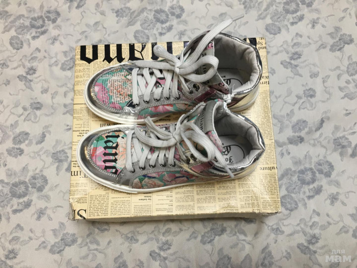 Новые кеды в стиле «газета», очень узнаваемые, полностью кожа, сбоку молния, удобные, по стельке 21,5см