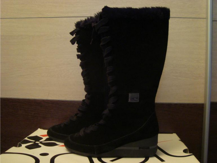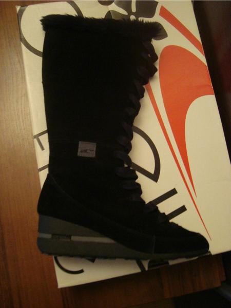Продаю новые замшевые сапоги (демисезон,можно и зимой)очень удобные можно и на узенькую и на широкую ногу так как голенище регулируется шнуровкой, один раз зашнуровали и можно пользоваться змейкой!на ноге смотрятся очень классно!не дорого так как на внутренней стороне канта след от лампы на витрине,данный дефект абсолютно не виден снаружи(ниже фото).Цена:2500.
