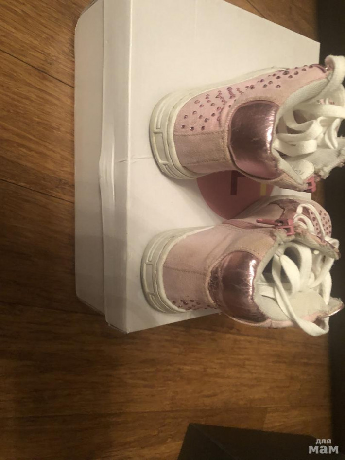 Туфли 26, кроссовки 26 (к сожалению отмыть до бела не получается. Они скорее как дополнение к пакету, если нужны, были наши любимые.). Сапоги на мутоне 27 размер Viviane. Кеды розовые 27 размер. Нет несколько страз и есть небольшие загрязнения. Почти не носили.