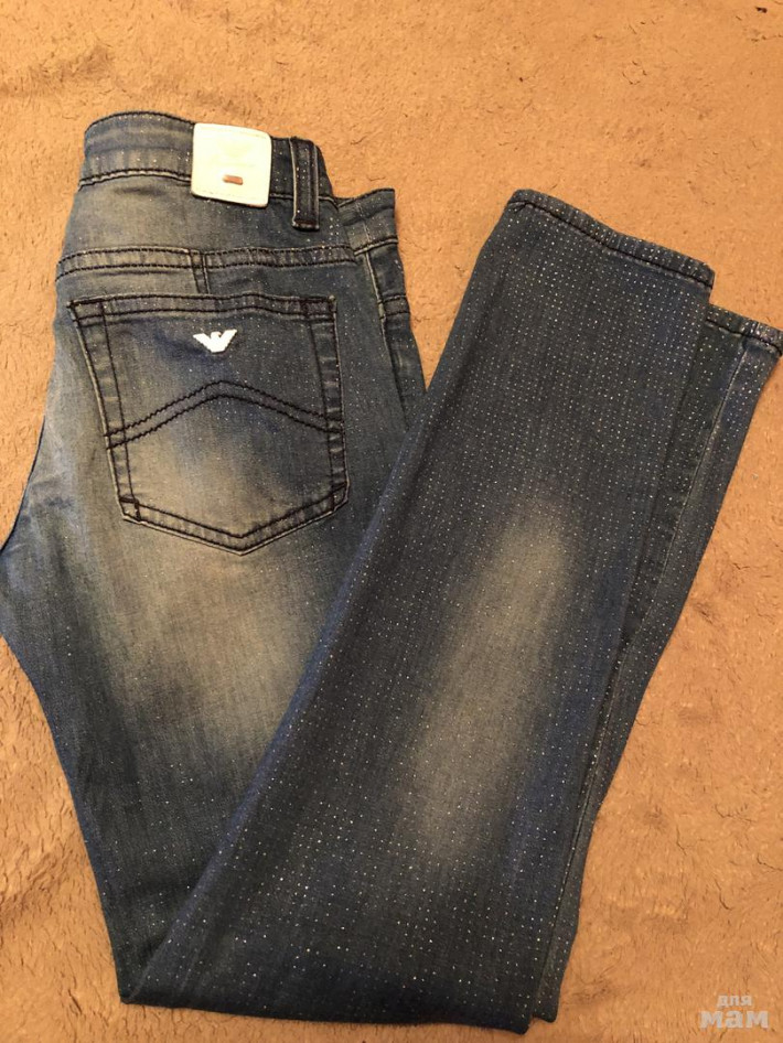 Джинсы Armani junior. Размер 130(8А), до 140см надевали. С серебристыми вкраплениями, нарядные. В очень хорошем состоянии. 900руб.