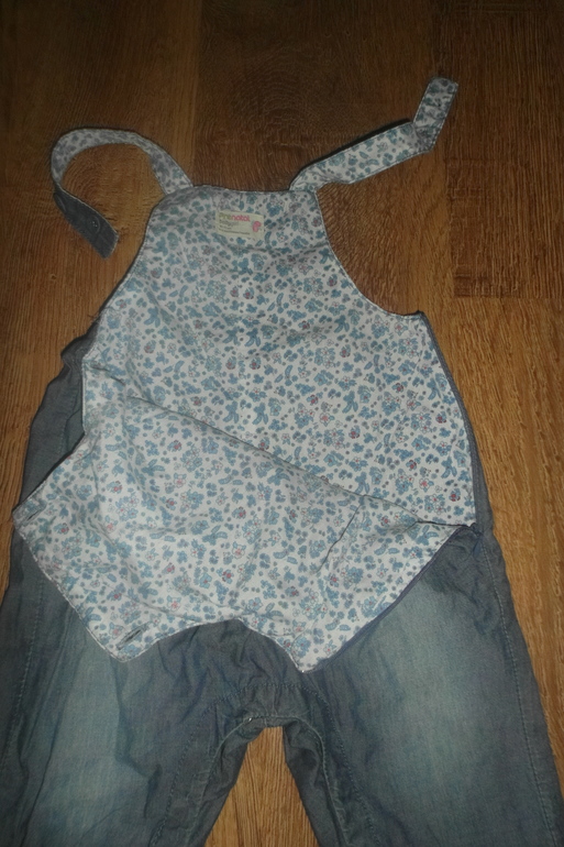 5. Джинсовый сарафан, в идеале, сзади полностью на пуговицах, раз. 3\6 мес, потом носили как жилетку, Англия, цена 350 руб