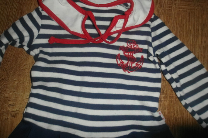 4. Трикотажное платье, в идеале, раз. 3\6 мес., потом носили как туничку, цена 100 руб
