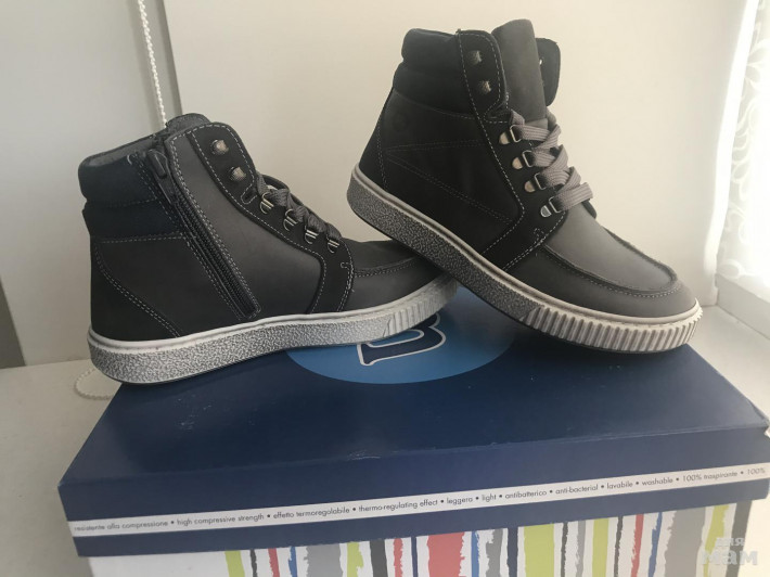 Мелания, кожа на коже. Качество шикарное. Легкие. Но мы переросли.по стельке 22,5 см