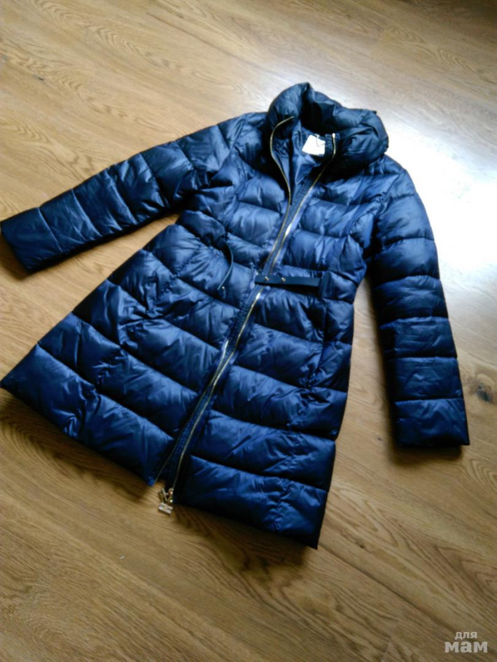 одет один раз,ещё не успела снять весь целлофан с фурнитуры, к сожалению, со своим объем груди просто не влезла, объем груди должен быть не больше 108 см, талия регулируется ремешком до 80 см ,бедра абсолютно свободные, пуховик легкий, удобный, очень стильный красивый ,безумно мечтала о нём((( ..покупала за 420 евро