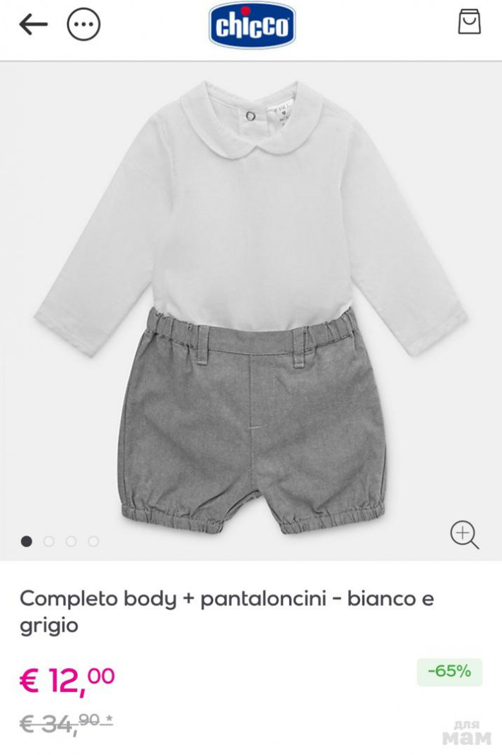Новый костюмчик Chicco. Размер 12 мес (74 см). Боди: верх сделан как рубашка х/б, низ трикотаж и шортики.