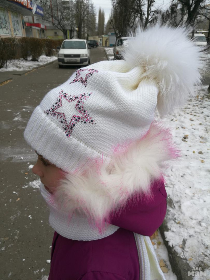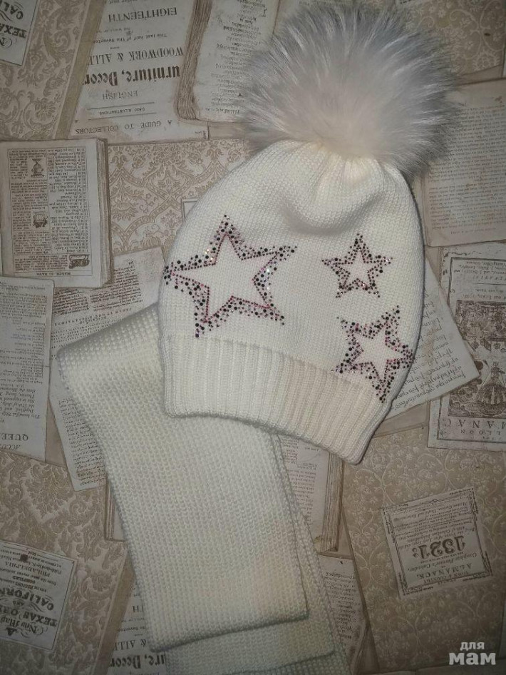 Продам любимый комплект от Карины! Очень теплая шапочка, двойная вязка, огромный белый помпон.Шарф в 2 оборота.Состояние отличное! р.52-56