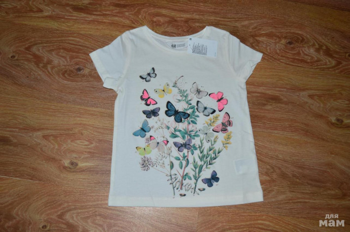 Продам новую с бирками футболку НМ, очень красивая!!! Цветом не белая, а слоновой кости. Маркировка 122-128. Причина продажи- пролетели с размером.