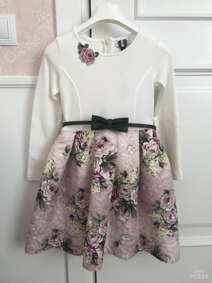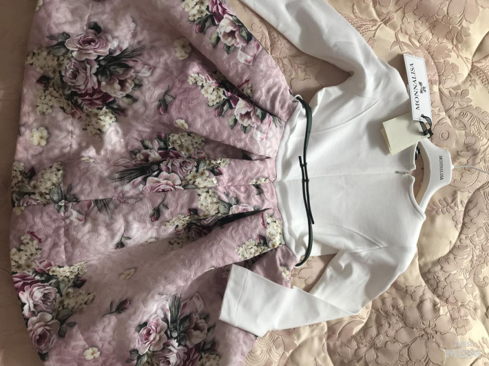Размер 7. Состояние новой вещи. Одели на 2 часа в театр единожды. Верх - хлопок, вискоза. Низ - жаккард на хлопковом подкладе. Шикарное!!!