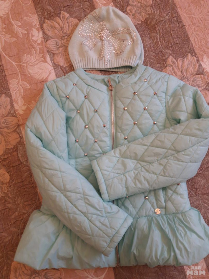 Легкая курточка б/у на тонком синтепоне,фирма Акула.Размер 134.Шапочка CHOBI б/у, размер М(52-54),состав 100%хлопок. Цена 1200р.