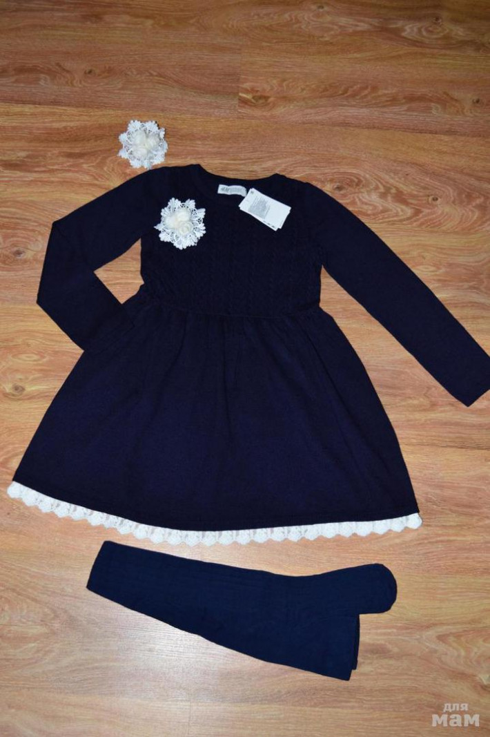 Продам новое с бирками платье НМ, маркировка 122-128 идет на указанный рост. Плотная вязка не просвечивает, лиф ажурный, по низу кружево- очень красивое!!! И на торжество и повседневное!!! Планировали носить сами, но переросли. К платью отдам новые колготы. Платье и колготы в тон темно-синие.