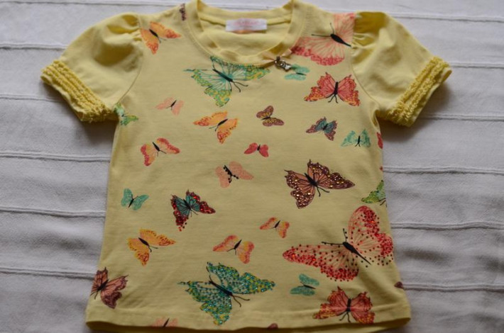 Футболочка COLABEAR р.106 с бабочками и стразиками. Длина 38 см, между подмышками 30 см. 350 руб.