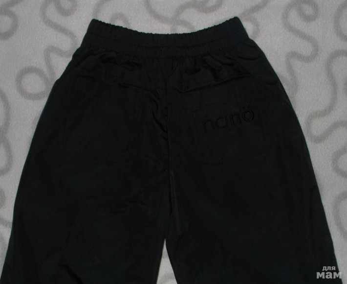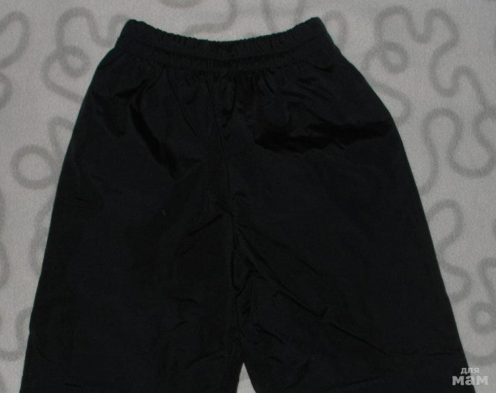 Брюки с подкладкой из трикотажного материала. Пояс на резинке. В нижней части брюк дополнительная ветрозащитная юбка с резинкой защищающая от попадания влаги и ветра. Присутствует система роста (на брюках внизу есть специальная шлевка с кнопкой, позволяющая удобно регулировать длину штанины).