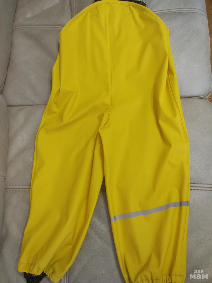 Дождевой комплект, резина без утеплителя. Отличный вариант для дождливой погоды и прыганья по лужам)) Состояние хорошее, на штанах только следы от одуванчиков, фото прилагаю. Замеры: Штаны-длина-60, шаговый-37, ширина-39 (уменьшается кнопками до 30) Куртка-длина-47, ширина-42, рукав от горла-41