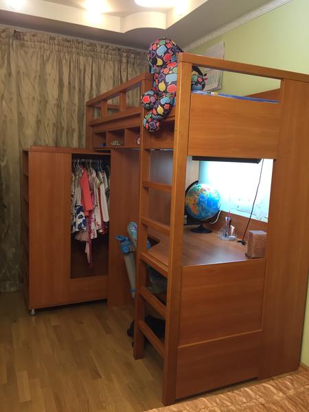 Продам комплекс -кровать-чердак, выкатной шкаф, письменный стол и выкатная тумба. Все в отличном состоянии, без единой царапины.