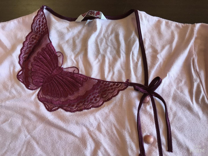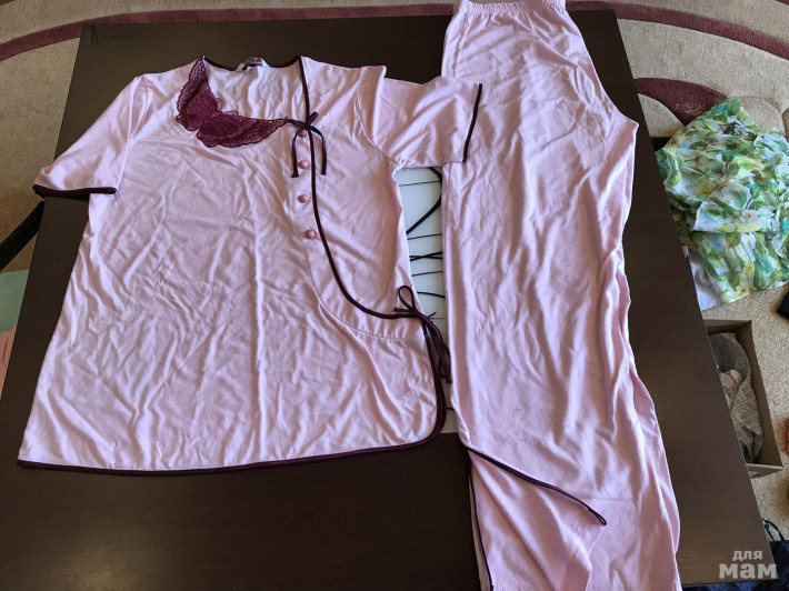 Пижама розовая с вышивкой. Сидит очень красиво. Состояние очень хорошее, но есть нюансы. Еле заметные пятнышки, выводить не пробовали, может и отстираются. И надо поменять резинку в брючках.
