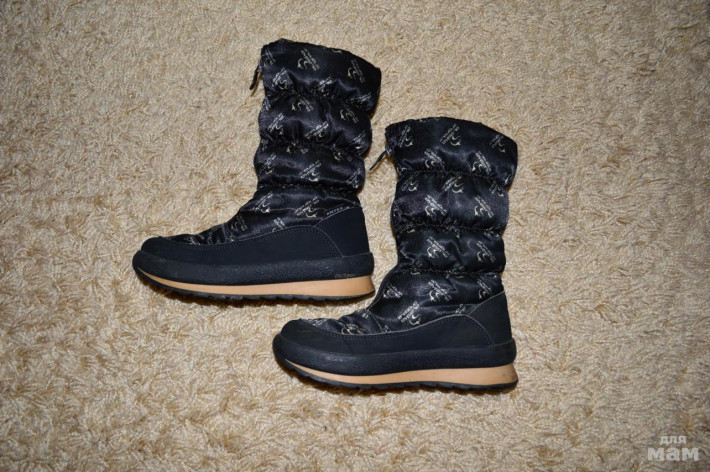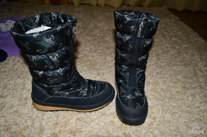 Очень теплые и стильные сапоги Alaska originale, носили мало, было еще три пары кроме этих: две пары куомы и пара капика. Размер 33, по стельке 21.5 см. Мембранные, не пропускают воду, ножки не потеют, всегда сухие. Легкие, удобные, отличная подошва - не скользит по зимней дороге.