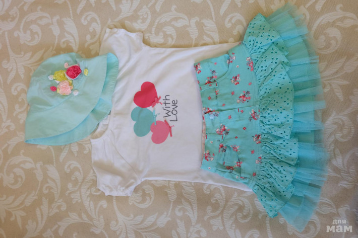 Б/У футболка+юбочка Wojcik + панама Chobi = состояние хорошее, поносили немного на море. Размер - до 100см худенький ребёнок спокойно поносит, на фото рост у дочи чуть больше 100см.