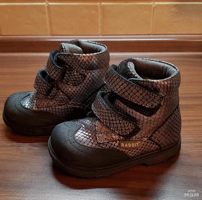Демисезонные ботинки Rabbit б/у, натуральная кожа (верх и стелька), застежка - две липучки, анатомическая стелька, хорошая фиксация голеностопа. Имеют прорезиненный мысок (защита от влаги).