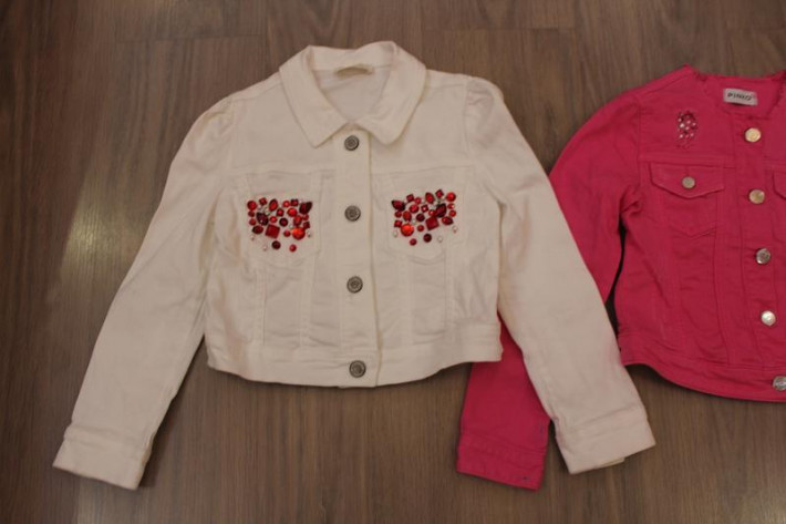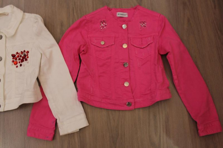 Джинсовки белая Моннализа и Пинко фуксия р.8, маломерят. Белая в идеале, у фуксии рукав внизу в краске, оттирать не пробовала, 3800 р. две.