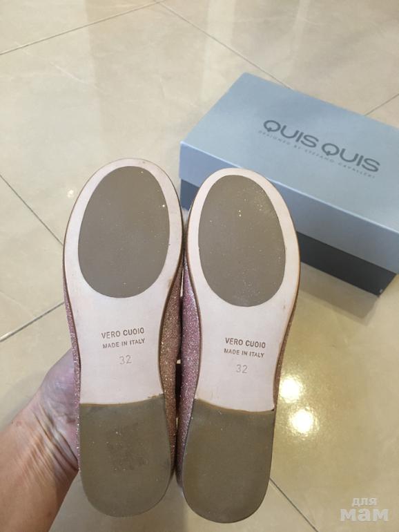 Балетки Quis Quis размер 32, по стельке 20,5см. Производство Италия. Внутри натуральная кожа, подошва - кожа с профилактикой, снаружи текстиль.Очень красивые и нарядные.