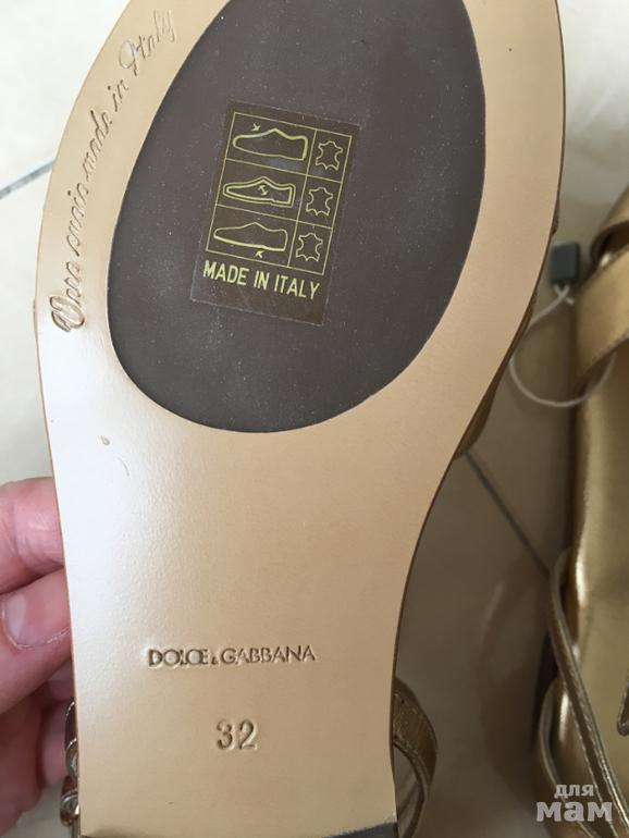 2. Босоножки Dolce&Gabbana размер 32 по стельке 20 см. Куплены в Италии, оригинал 100%. Снаружи и внутри натуральная кожа, золотого цвета. Подошва -кожа и профилактика в центре.