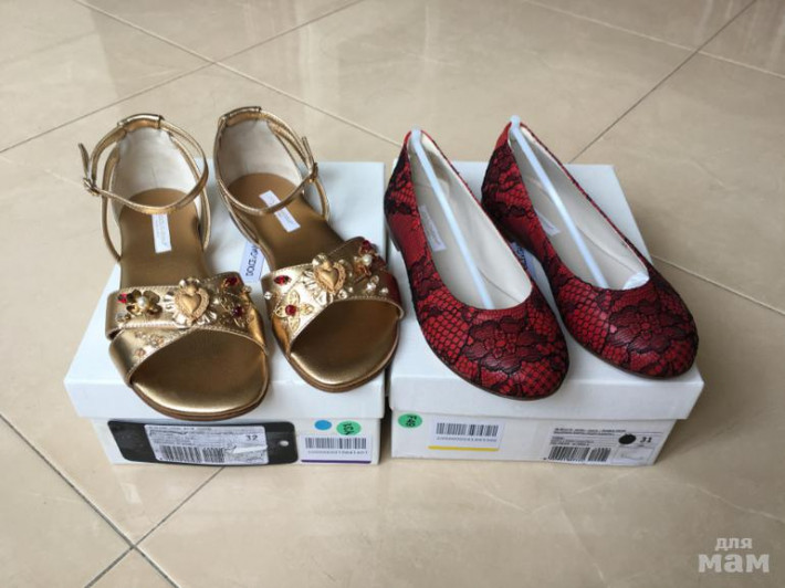 1. Балетки dolce&gabbana размер 31 по стельке 19,3 см. Куплены в Италии, оригинал 100%. Снаружи натуральная кожа красно-бордового цвета обтянута чёрным кружевом, внутри полностью кожа, подошва -кожа и профилактика в центре. Нежные, эффектные, очень красивые. Цена 3500 руб.