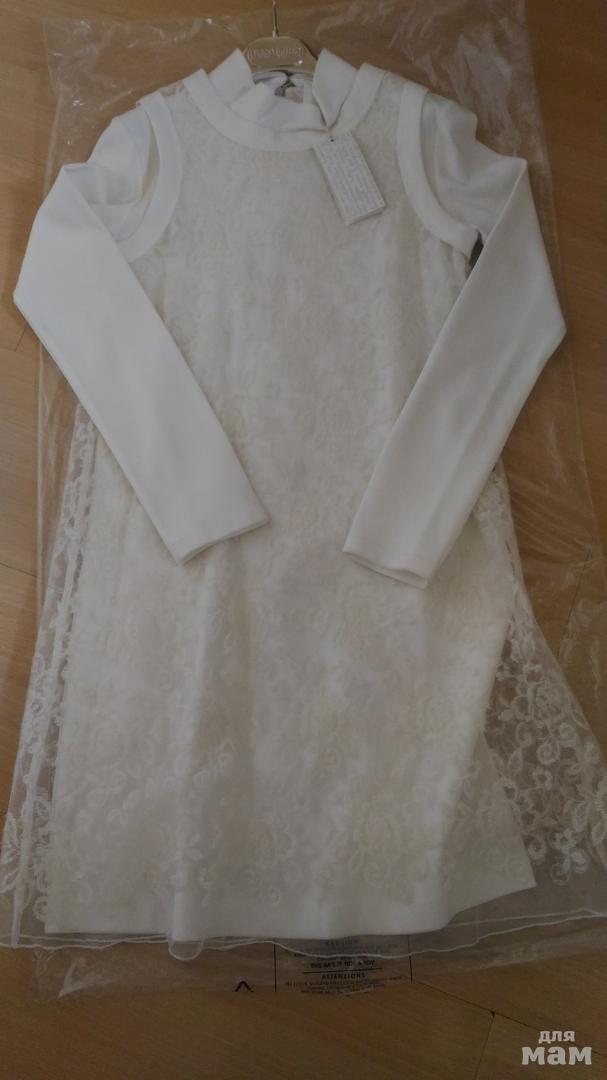Двойное платье,очень красивое.Нижнее платье плотный трикотаж,верхнее кружевное,ванильного цвета.Очень красивое!!!