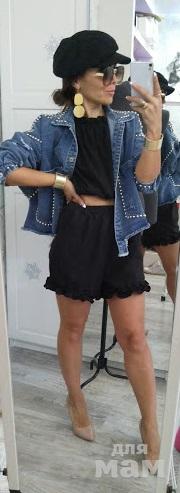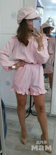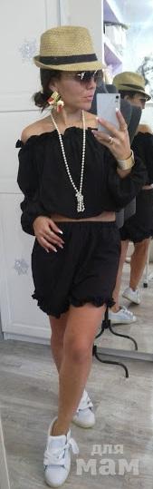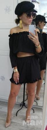 этот костюмчик универсальный можно и при и в мир и на каждый день и на выход, добавив аксессуары) так же можно плечики полностью открыть, или одно плечо, или вообще плечи не открывть..так же и с животиком можно топ подтянуть и показать подтянутый пресс))) или де наоорот прикрыть проблемные места)
