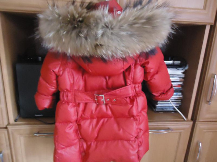 Пуховое пальто Иль гуфо, размер 18 мес, но сильно большемерит, до роста 100, на 106 только коротковаты рукава. Даже с подогнутыми рукавами смотрится аккуратно, если брать на вырост. Состояние очень хорошее, зацепок, дырок нет, но нужна химчистка. Шикарная опушка.