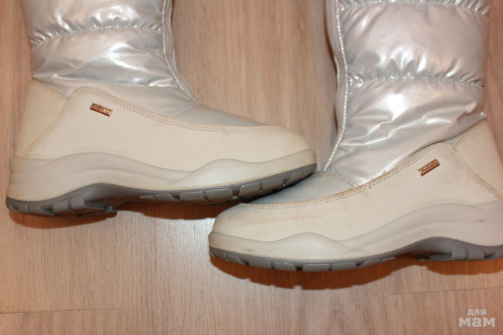 Джоги цветы и Скандия серебряные, обе пары 35 р. Б/у, носили сезон, у сапожек в цветы из недостатков есть заломы еле видные спереди, а у серебряных не отмылась кожа по периметру сапога (может специальный шампунь какой отмоет), у сапог подошва почти чистая осталась. По 1000 руб. за пару. По стельке примерно 23 см.