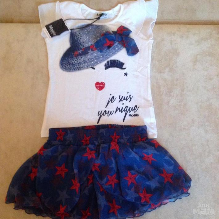 Замеры: Полуобхват талии у юбочки в нерастянутом виде - 27, длина футболки - 40, подмышками -32-33