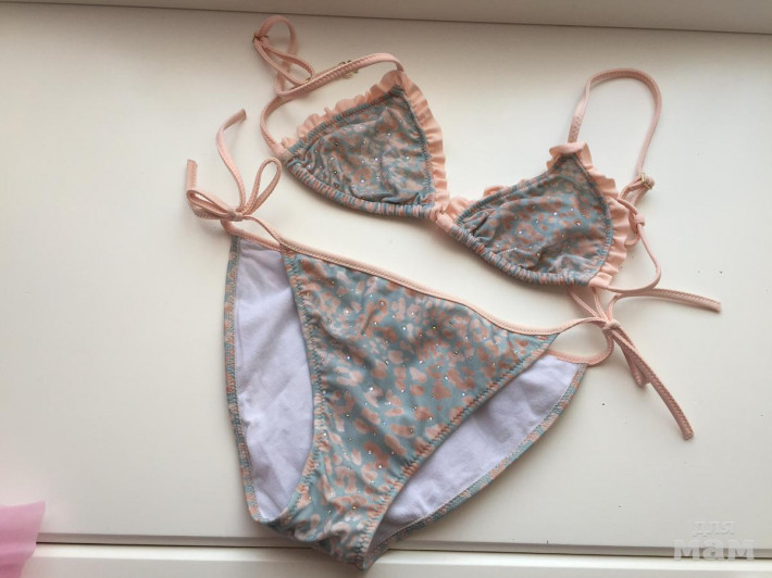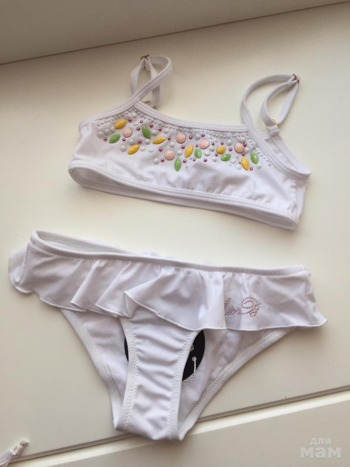 22) Маркировка I, II, III - на мой взгляд соответствует 6-9, 12-18 мес. Продается комплектом с туничкой ниже. Комплект купальник+туничка - 3000 руб.
