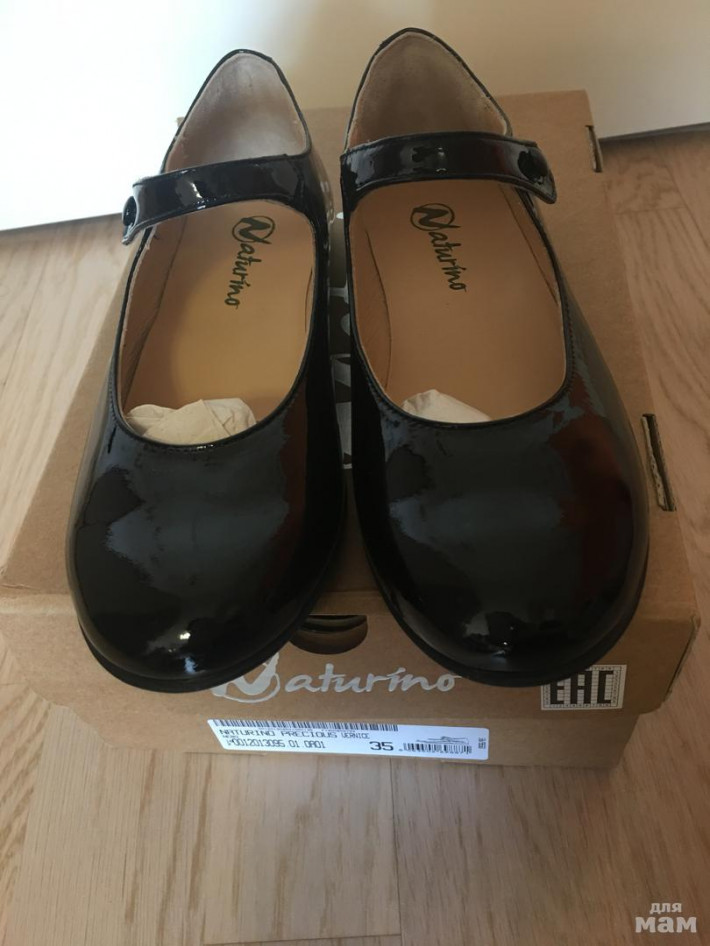 Пристраиваю туфли Naturino р.35 по стельке 22,8 см. Очень комфортные, легкие и мягкие. Натуральный лак, хлястик на резиночке, отстегивается. Не подошли по размеру, ближе к 34. В закупке стоили 69€, срочная продажа за 4500₽. Отправлю Почтой или ТК.
