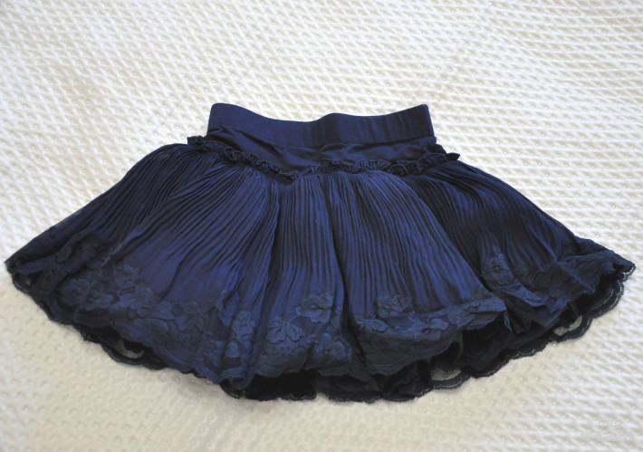 7. Юбка Omika на рост 98-104, темно-синего цвета. Состояние новой вещи, одета один раз на праздник. Кокетка из плотного трикотажа, по низу кружево. Очень красивая! Цена 550 руб. ПРОДАНА
