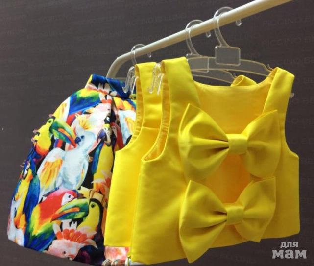 На худенькую девочку,ориентируйтесь на замеры: длина юбки 39.5 см, талия 60 см ( есть утяжка), ширина топа по груди 68 см, длина от плеча 31 см.