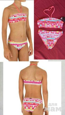 39) TRIBORD Girls' Two-Piece Ruffle Bandeau Bikini Swimsuit - Toucan 900 руб