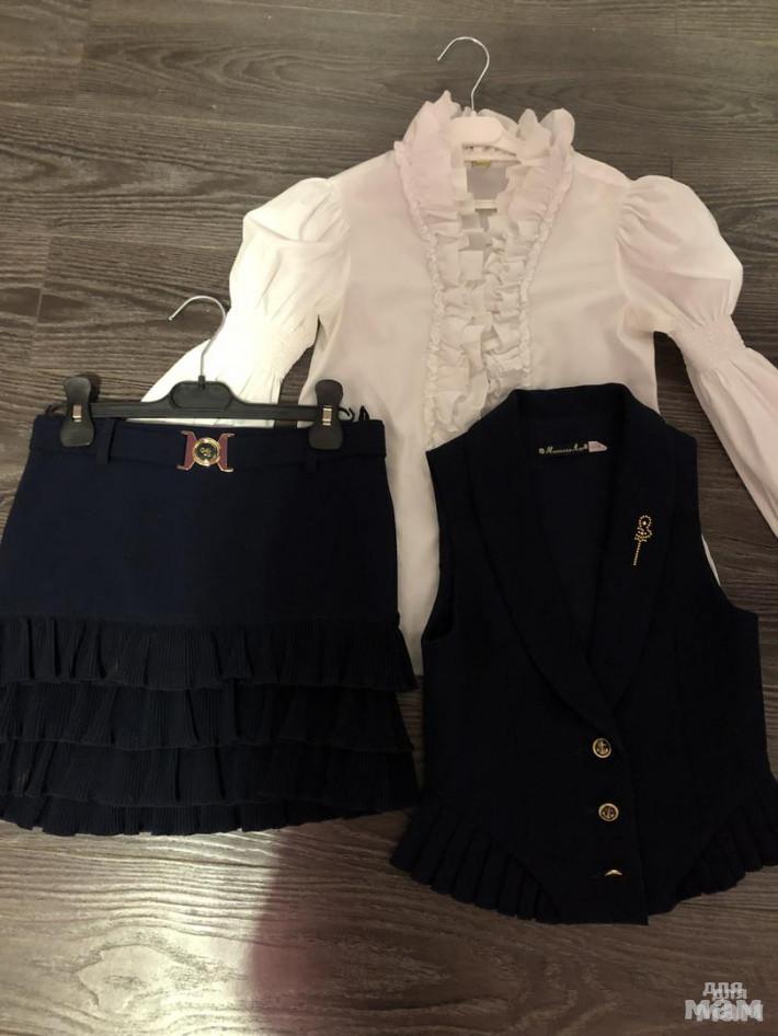 Состояние очень хорошее размер 140 но на мой взгляд маломерит, можно от 128 и до 135, дальше юбочки будут коротковаты. Комплект жилет с юбка 2200 пиджак и юбка 2000